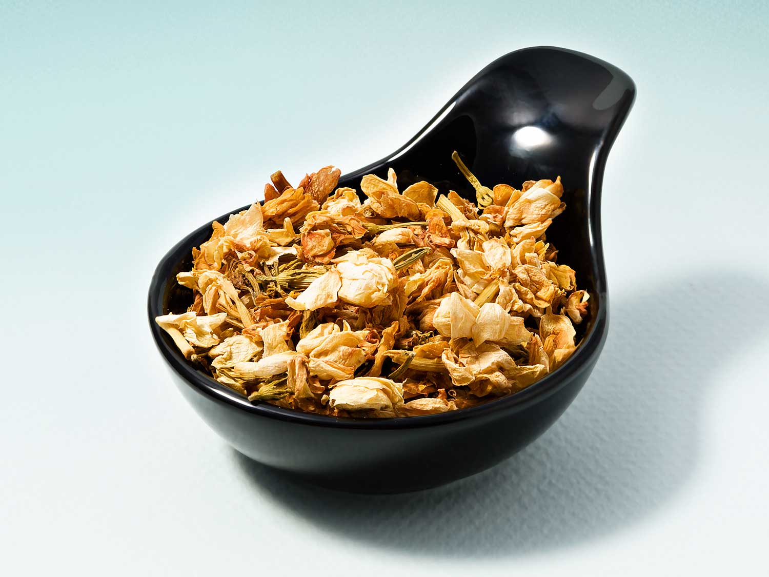 A jázmin az olajfélék (Oleaceae) családjába tartozik, és főként díszítő célokra, falak, pergolák és kerítések burkolására használják. Az ókorban úgy tartották, hogy a híres "jázminolaj" gyógyászati erényekkel és magas terápiás potenciállal rendelkezik. Ennek a virágnak az illatát még mindig használják az aromaterápiában, hogy jó közérzetet keltsenek. HASZNÁLAT A KONYHÁBAN: A jázmin virágai kiválóan alkalmasak nyers hal, rákfélék és puhatestű alapú ételek kísérőire. Salátákhoz, gyümölcssaláták vagy friss gyümölcs carpaccio díszítésére is használható. Egy étkezés nagyon finom befejezése, vagy melegebb időben egy harapnivaló a jázmin sorbet. E virágok másik felhasználási módja az infúzió édes és illatos teák és gyógyteák előállítására. A JÁZMIN TULAJDONSÁGAI: A jázmin számos hatóanyagának köszönhetően segíti a pihenést és csillapítja a stresszes állapotokat, segít a köhögés és légúti problémák csillapításában is. Botanikai név: Jázmin